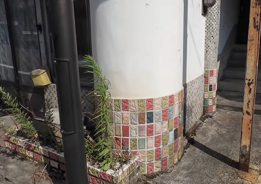 通り全体が真っ白な壁面で統一されているものの、下地には豆タイルの装飾が。